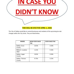 Posted on 2026-03-17 New Tax Rate Change Tax Rate Change.... If you have any questions, please feel free to call the City Office at 78... Read More